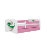Einzelbett 160 x 80 cm für Kinder Babydreams weiß / pink mit Schublade, Design-Auswahl - "Dino"-Grafik