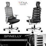 Ergonomischer Bürostuhl auf Rädern mit Netzrückenlehne Unique Spinelly - Konstruktion schwarzes Material, Polsterung BLACK Stoff